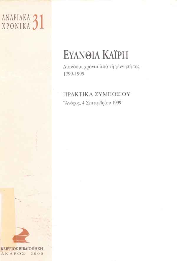 Ευανθία Καΐρη : διακόσια χρόνια από τη γέννησή της, 1799-1999 : πρακτικά συμποσίου, Άνδρος 4 Σεπτεμβρίου 1999