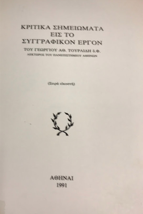 Κριτικά σημειώματα εις το συγγραφικόν έργον του Γεωργίου Αθ. Τουρλίδη : σειρά εικοστή