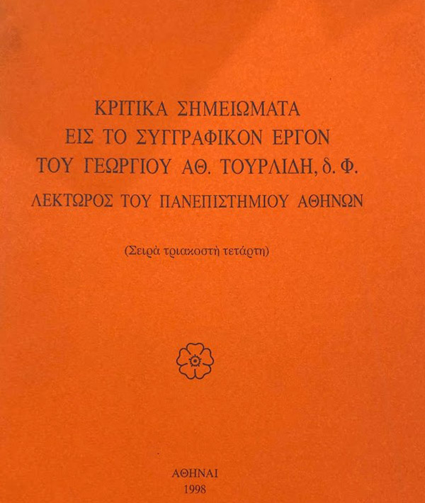 Κριτικά σημειώματα εις το συγγραφικόν έργον του Γεωργίου Αθ. Τουρλίδη, δ.φ. Λέκτωρος του Πανεπιστημίου Αθηνών : σειρά τριακοστή τετάρτη