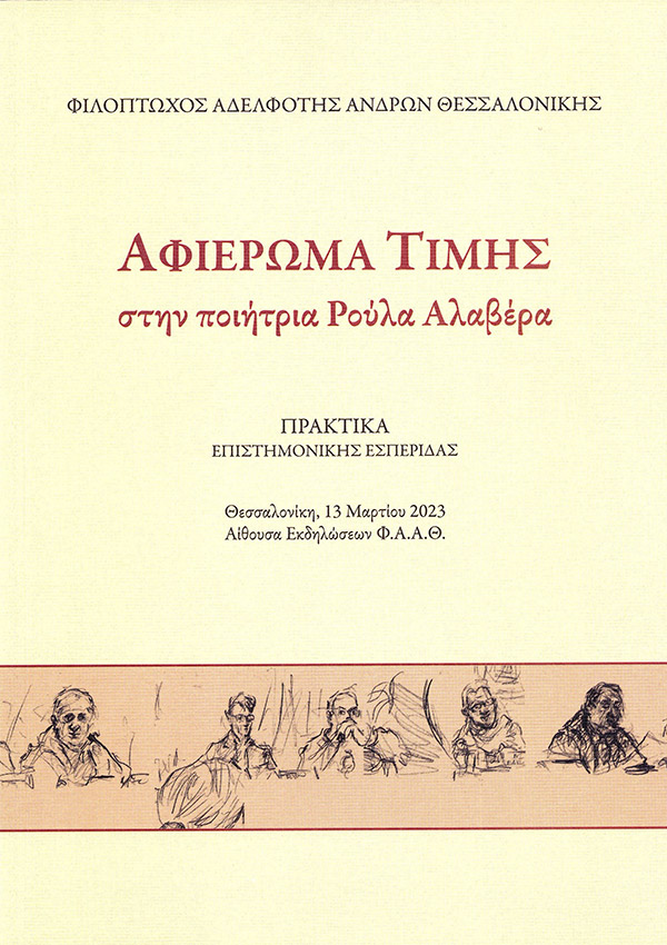 Αφιέρωμα τιμής στην ποιήτρια Ρούλα Αλαβέρα : πρακτικά επιστημονικής εσπερίδας, Θεσσαλονίκη, 13 Μαρτίου 2023, αίθουσα εκδηλώσεων Φ.Α.Α.Θ. / [επιμέλεια έκδοσης Γεώργιος Κωνσταντινίδης].