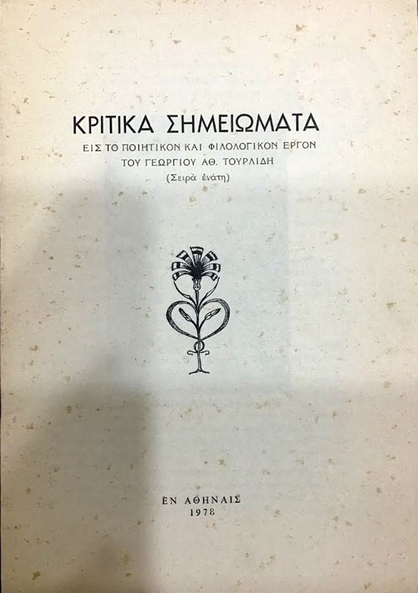 Κριτικά σημειώματα : εις το ποιητικόν και φιλολογικόν έργον του Γεωργίου Αθ. Τουρλίδη : σειρά ενάτη.