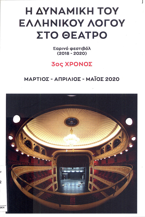 Η δυναμική του ελληνικού λόγου στο θέατρο : εαρινό φεστιβάλ (2018-2020) : 3ος χρόνος, Μάρτιος-Απρίλιος-Μάϊος 2020 / [υπεύθυνος υλοποίησης καλλιτεχνικού προγράμματος, επιστημονική επιμέλεια έκδοσης Κωνσταντίνος Κυριακού ; σχεδιασμός έκδοσης Γεωργία Σαϊνά].