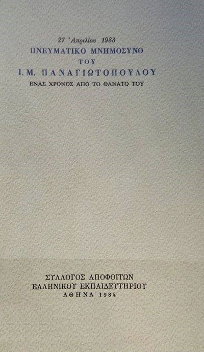 Πνευματικό μνημόσυνο του Ι. Μ. Παναγιωτόπουλου : ένας χρόνος από το θάνατό του : 27 Απριλίου 1983