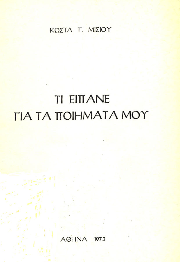 Βρέθηκαν 32 αποτελέσματαΤι είπανε για τα ποιήματά μου : Κώστα Γ. Μίσιου
